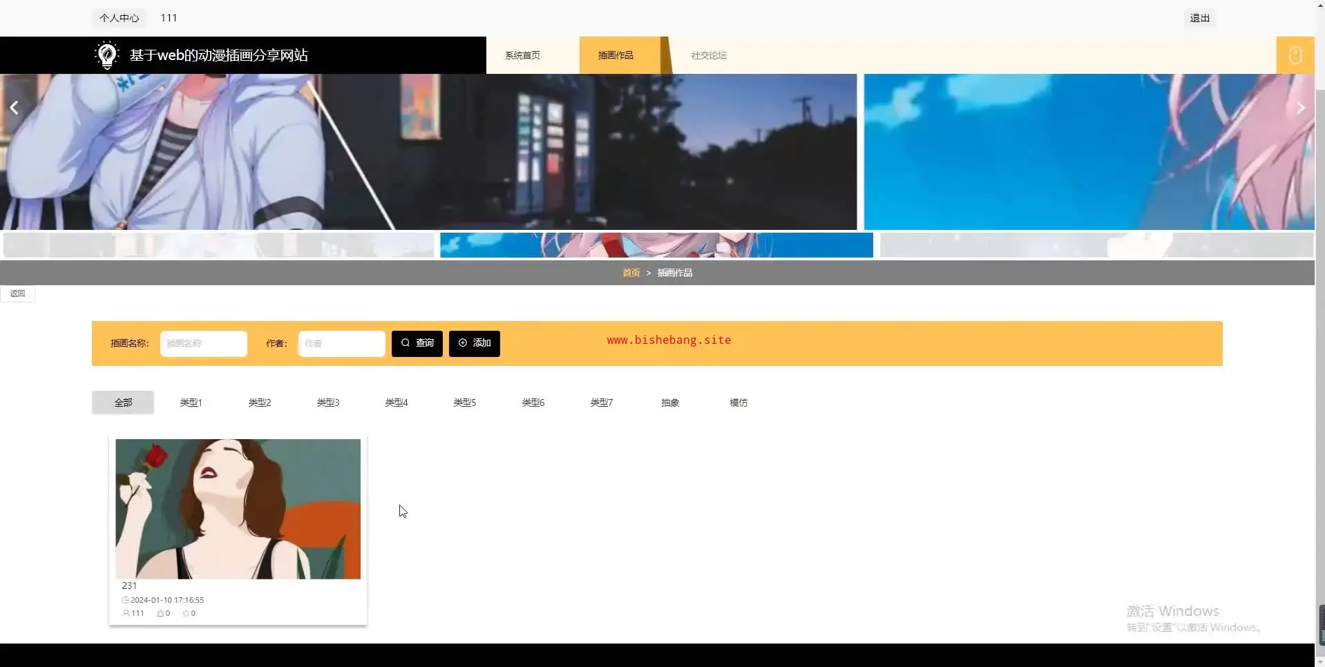 基于php的web的动漫插画分享网站(源码+lw+部署文档+讲解等)