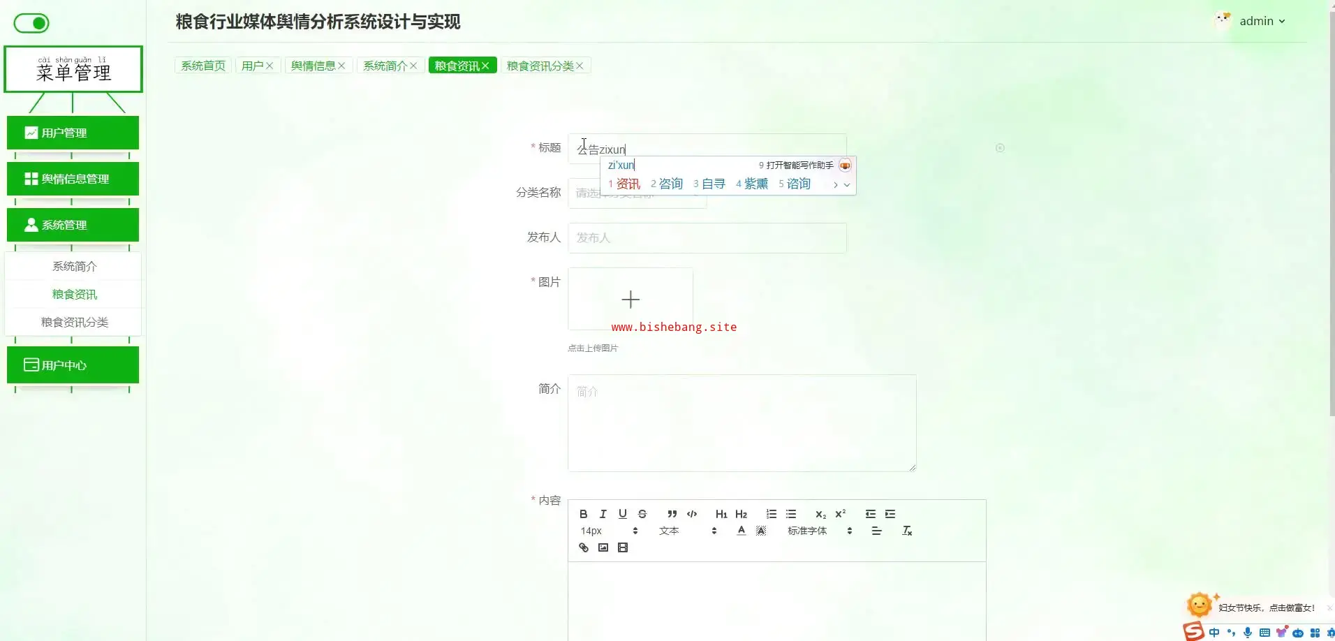 基于python+django的粮食行业媒体舆情分析系统(源码+lw+部署文档+讲解等)