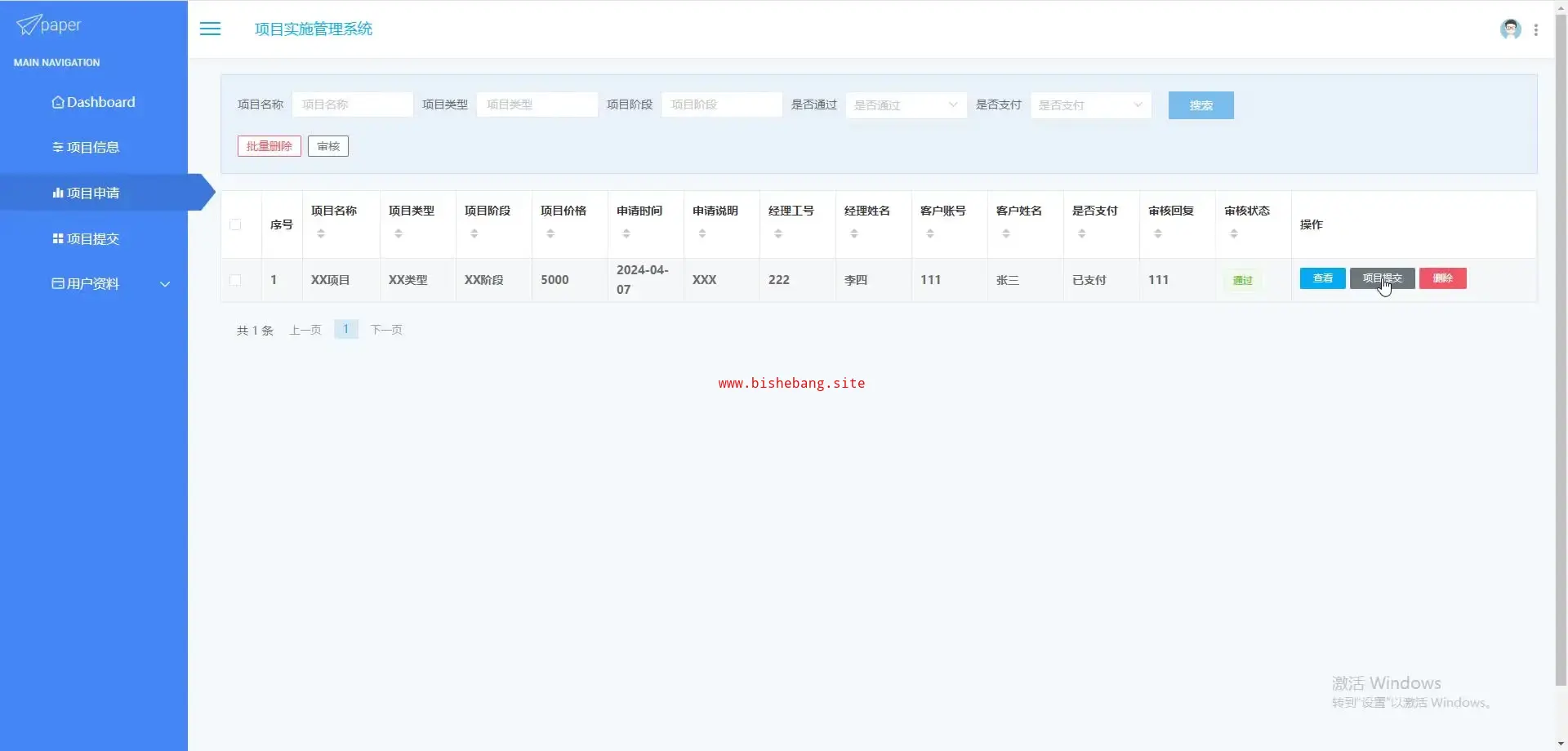 基于SpringBoot+Vue的项目实施管理系统(源码+LW+调试文档+讲解)