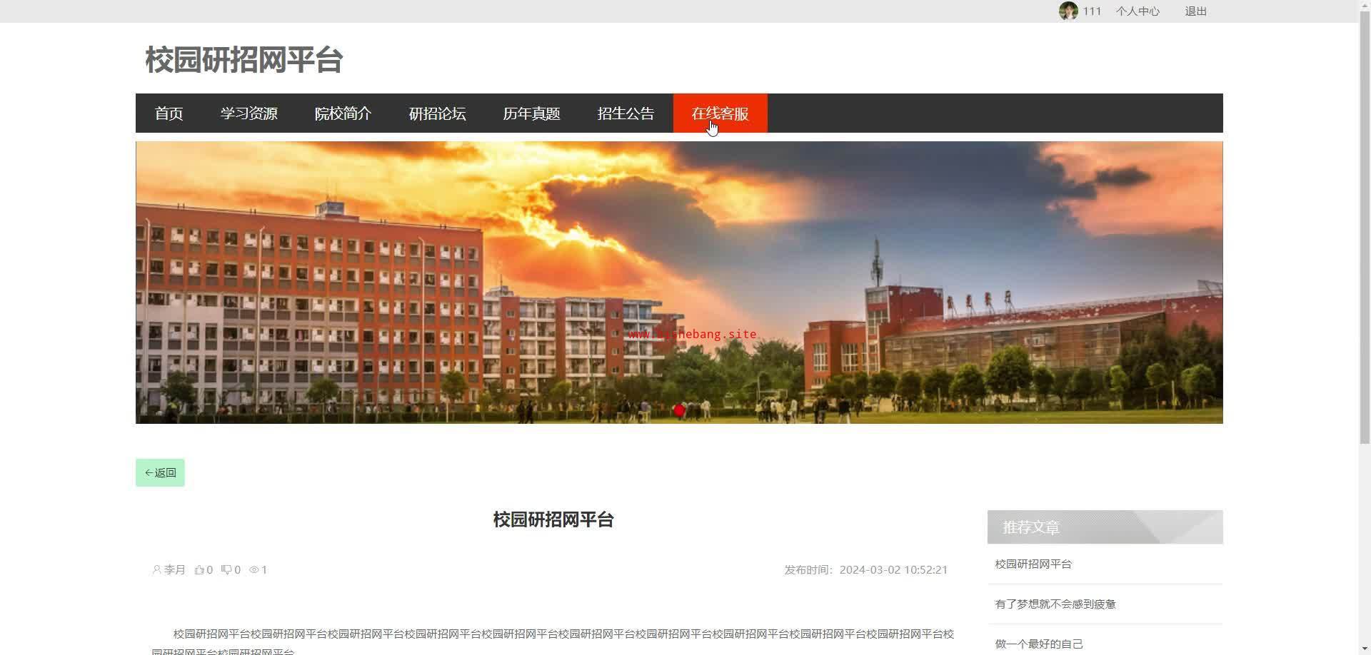 基于SpringBoot+Vue的校园研招网平台系统(源码+LW+调试文档+讲解)