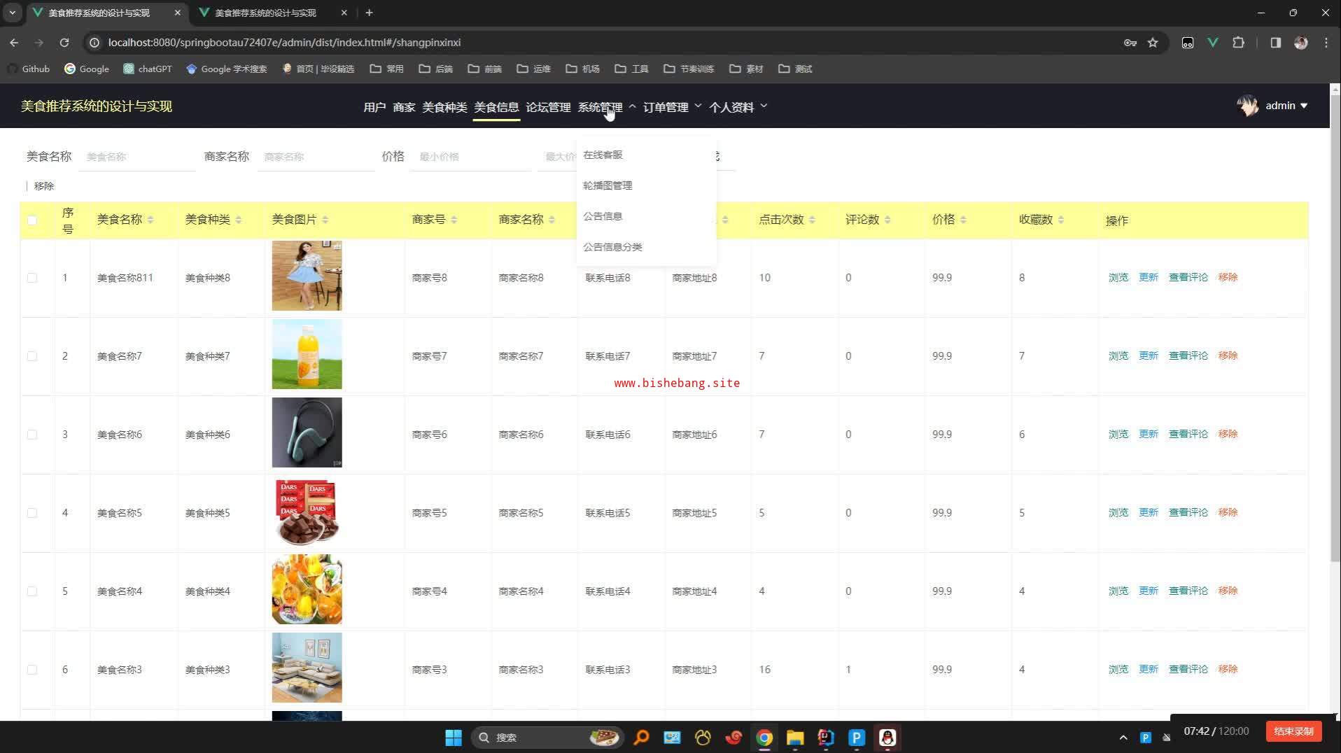 基于springboot+vue的美食推荐系统(源码+lw+部署文档+讲解等)