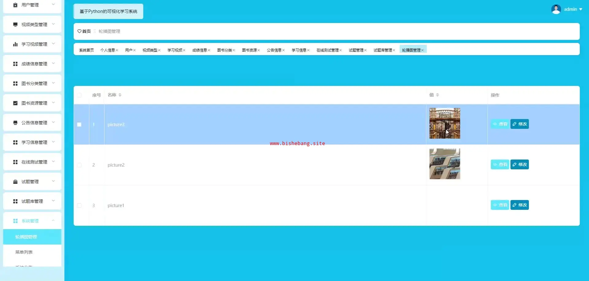 基于Python+django的可视化学习系统网站(源码+lw+部署文档+讲解等)