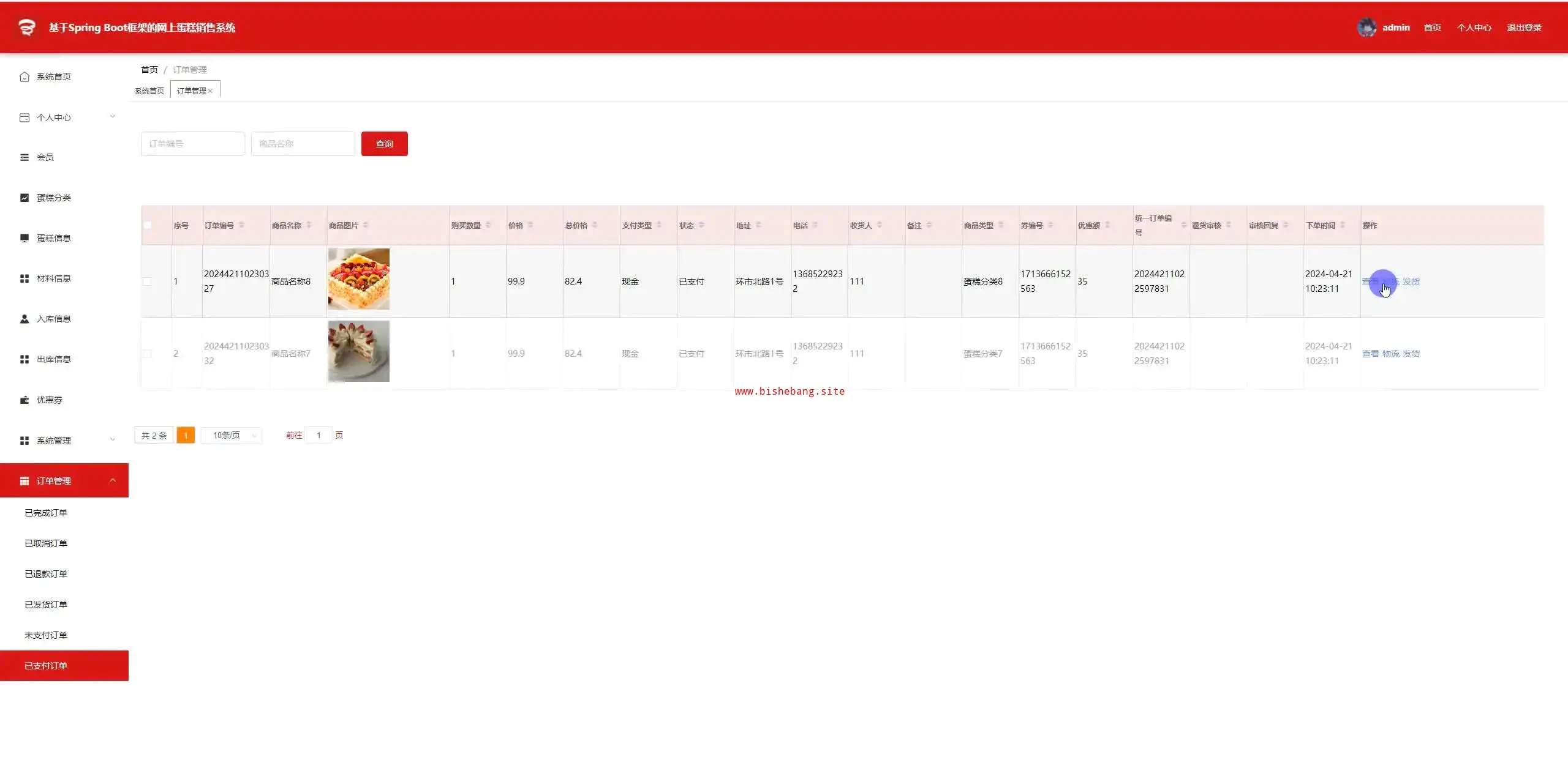 基于java+springboot的的网上蛋糕销售系统(源码+lw+部署文档+讲解等)