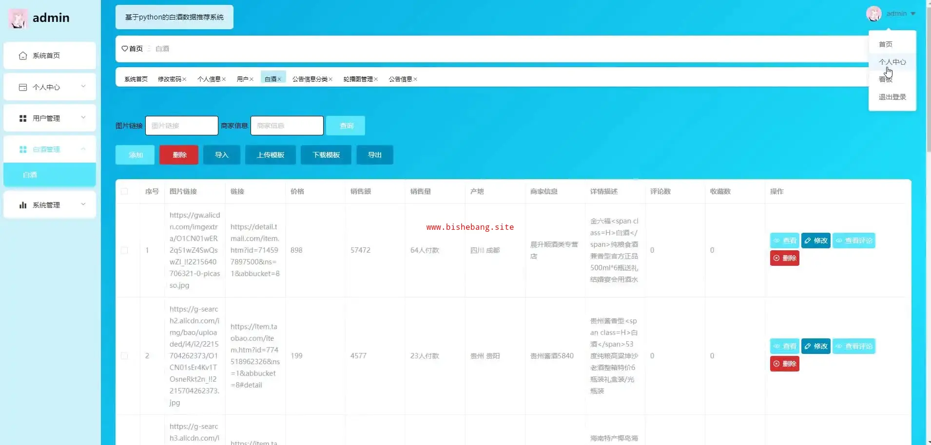 基于python的django的白酒数据推荐系统大数据分析系统(源码+lw+部署文档+讲解等)