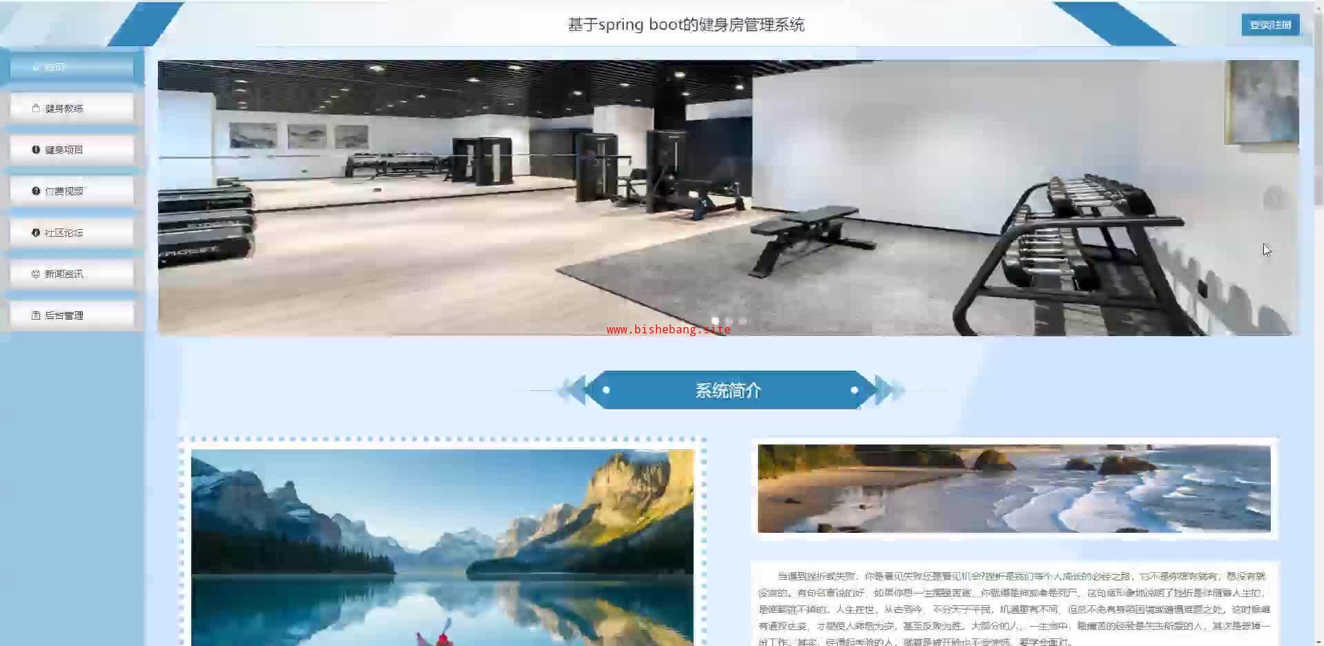基于springboot的健身房管理系统网站(源码+lw+部署文档+讲解等)