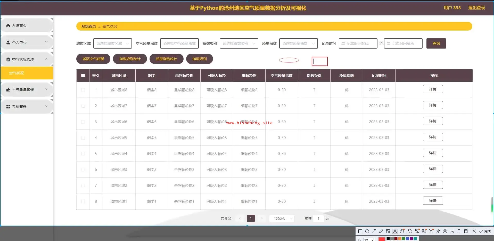 python基于Python的沧州地区空气质量数据分析及可视化(源码+lw+部署文档+讲解等)