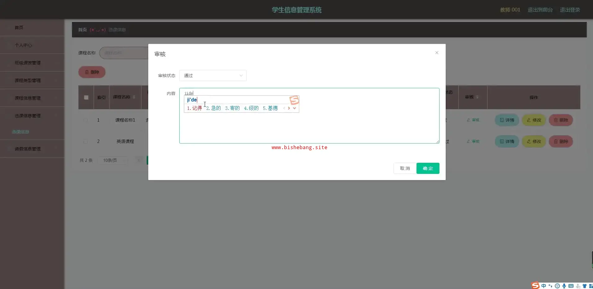 基于python和django学生选课请假信息管理系统