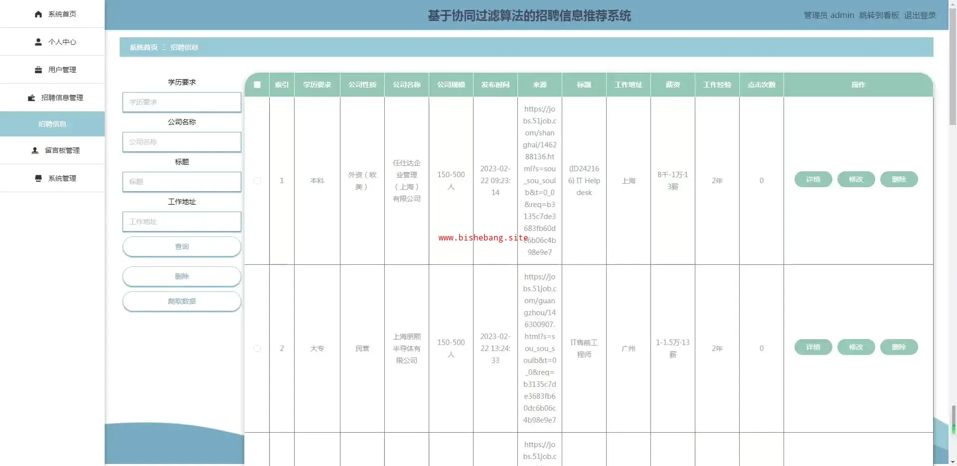 20django基于python的协同过滤算法的招聘信息推荐系统网络爬虫和可视化分析系统