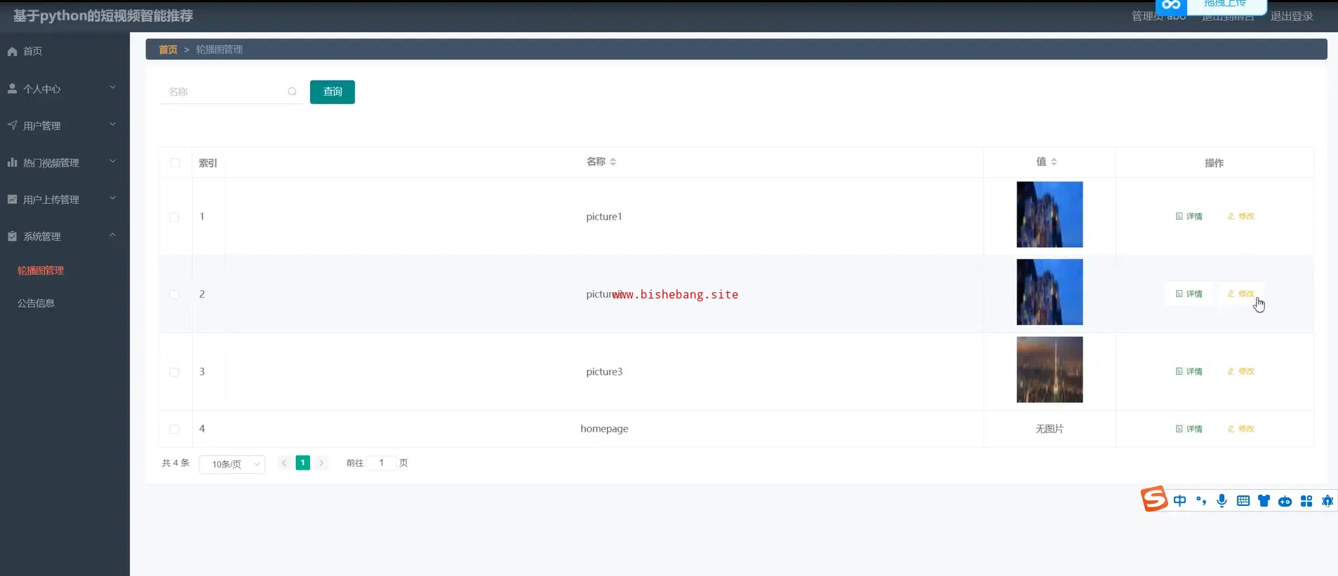基于python和django短视频-电影智能推荐管理系统网站
