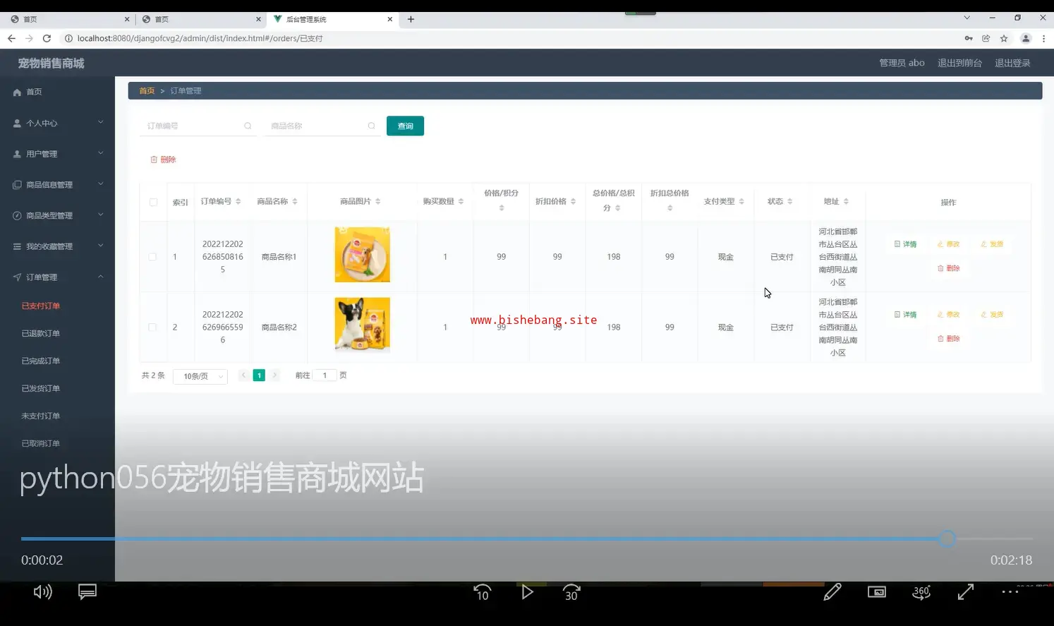 基于python和django宠物销售商城网站