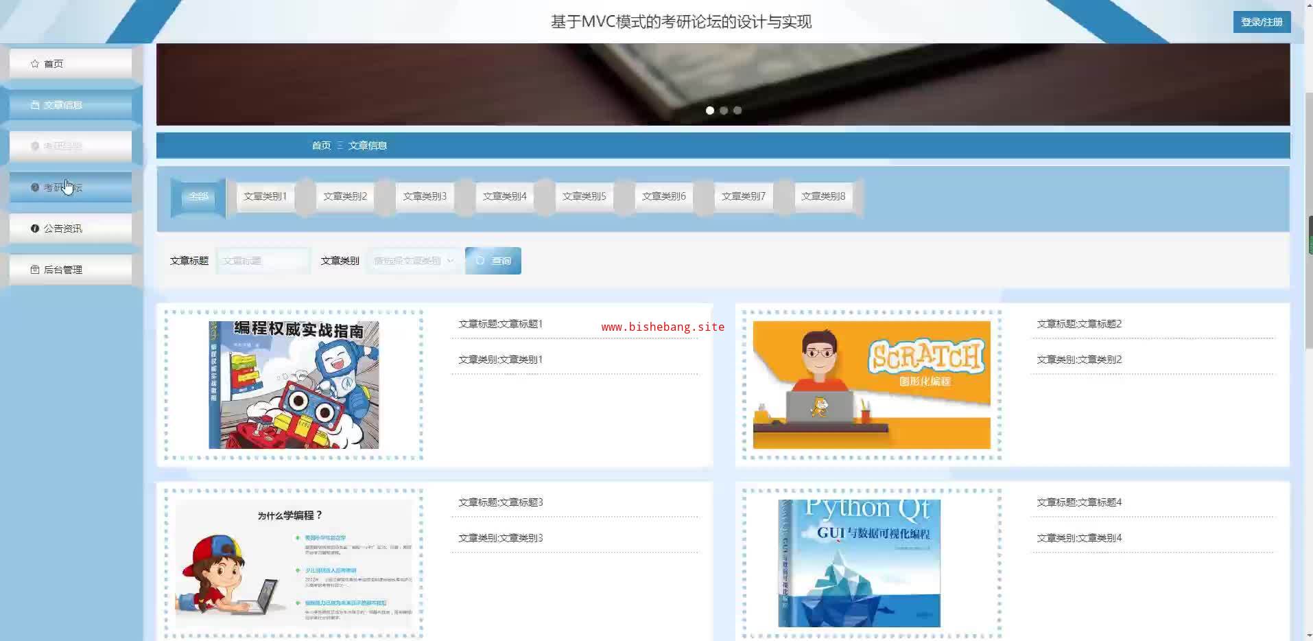 基于java+springboot+vue基于MVC模式的考研论坛交流管理系统的设计与实现万字文档和PPT(源码+LW+部署讲解)