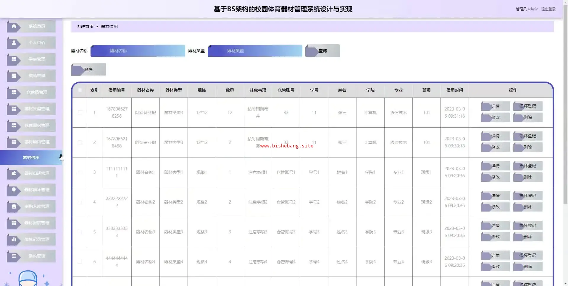 基于java+springboot+vue基于BS架构的校园体育器材管理系统设计与实现万字文档和PPT(源码+LW+部署讲解)