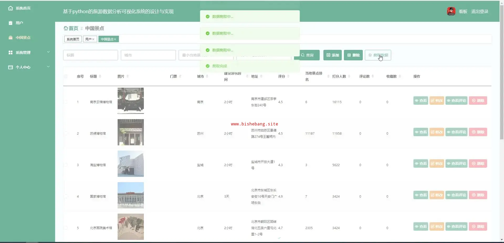 基于python+django的的旅游数据分析可视化系统的设计与实现大数据分析系统(源码+lw+部署文档+讲解等)