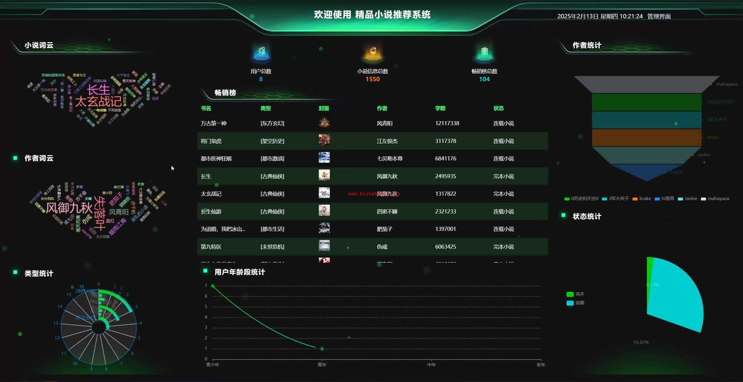 基于大数据的精品小说推荐与可视化分析系统(源码+lw+部署文档+讲解等)